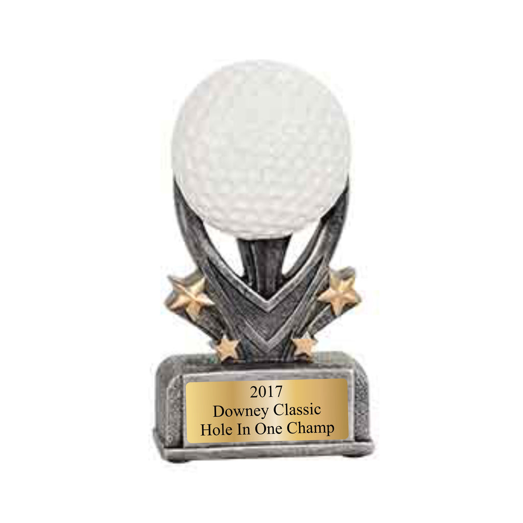 Personalize your trophy with your text and optional color logo on a silver or gold metal plate (up to 3 lines of engraving).