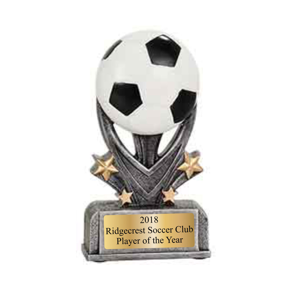 Personalize your trophy with your text and optional color logo on a silver or gold metal plate (up to 3 lines of engraving).