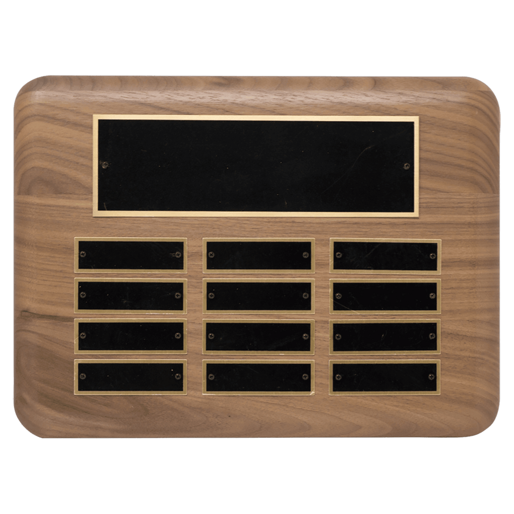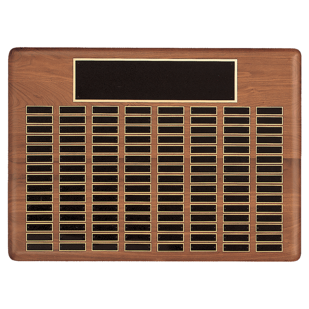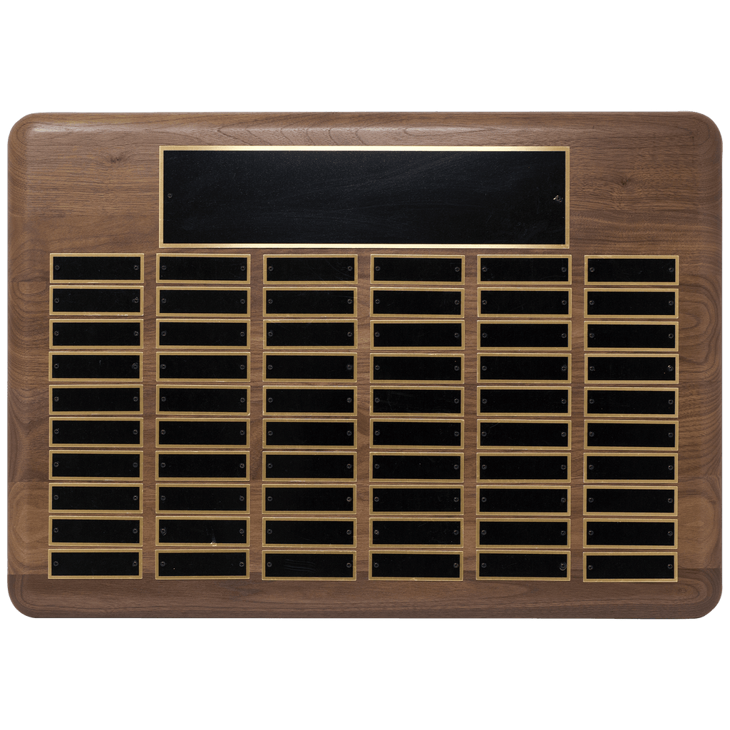 If you are looking for a classic plaque for your employees, or team members, look no further! This American walnut perpetual plaque is offered in several sizes to hold 12 to 144 black brass name plates.