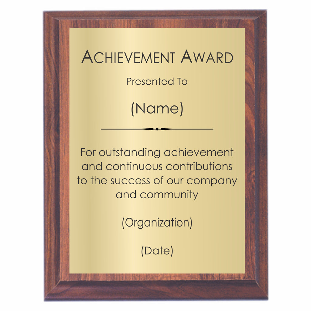 If you are looking for a great way to recognize someone special, our Achievement Award Plaque is the way to go! Our Achievement Award Plaque can be customized for students, employees, coaches, players, organizations or anyone else you want to recognize!