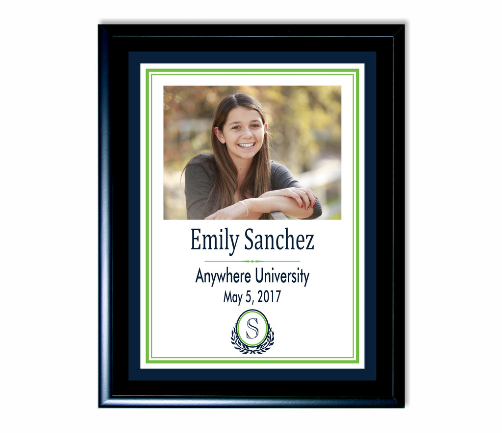 Our Graduation Plaque is a beautiful award perfect for recognizing the hard work and accomplishments of any graduate. This plaque proudly displays your school colors and a monogram. Send your photo, date, and school website and we do the rest.
